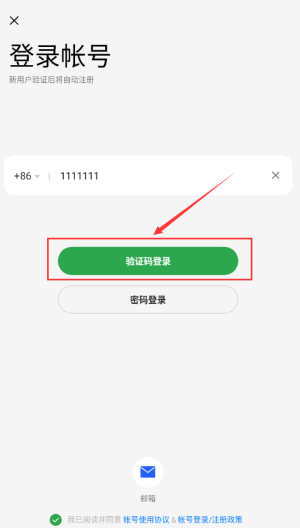 4、点击验证码登录,使用短信验证码登录。