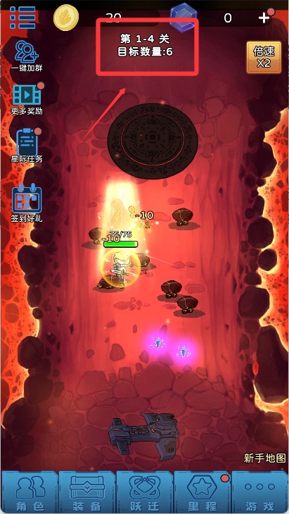3、游戏内每一关都有要消灭的怪物目标数量,达成即可前往下一关。