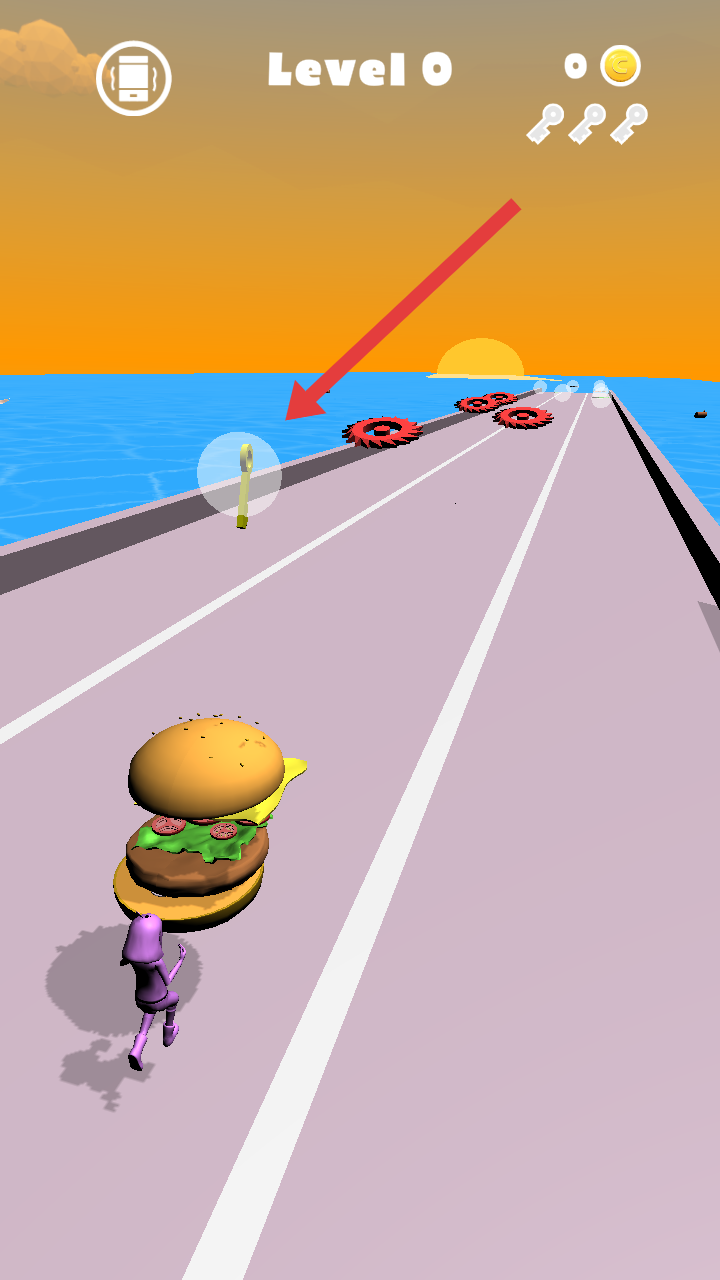 3、避障抵达终点:赛道上有各种陷阱阻碍,需及时发现并完美避开,最终将汉堡送到终点,避障的过程考验反应能力,让跑酷充满紧张与挑战,确保目标的达成。