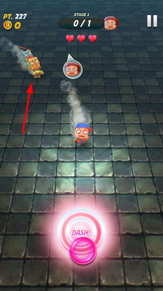 2、奔跑中吸引僵尸聚集,引导它们相互碰撞,积累能量条,满格时点击摇杆开启短跑模式,快速摆脱包围或攻击僵尸。
