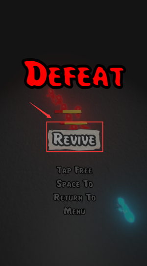 4、点击红框REVIVE按钮,消耗资源复活继续战斗。