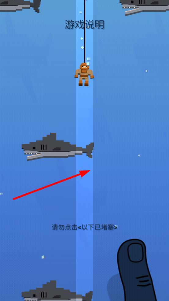 2、刺激障碍躲避:沉降途中需躲避鲨鱼,地雷等障碍物,一旦触碰就会瞬间爆炸,快节奏的下降与突发障碍带来强烈的紧张感,虐心的挑战机制让人在失败后仍想尝试突破。