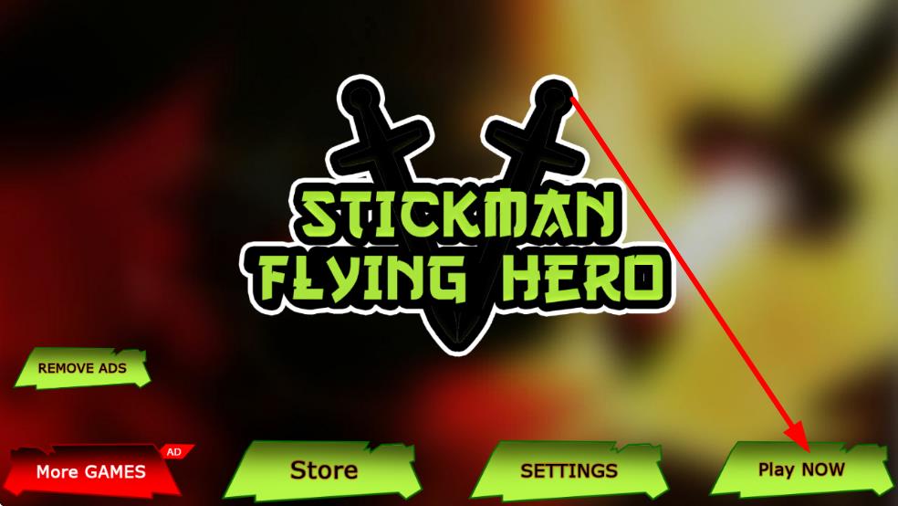 1、打开游戏后,在标题界面点击右下角绿色的Play NOW的按钮,进入Stickman Flying Hero游戏。