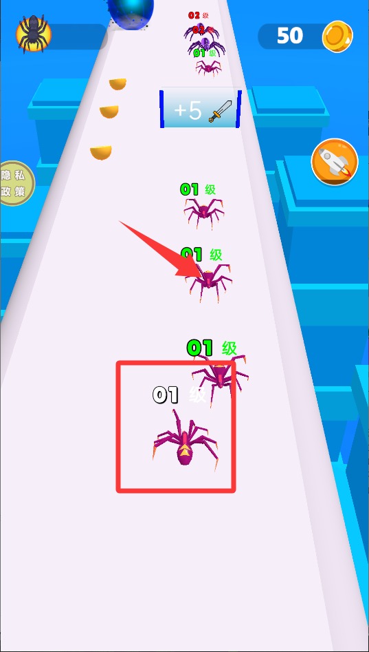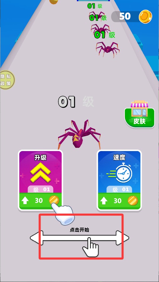 1、开局先把攒的金币用来强化蜘蛛,建议优先提升移动速度,这样跑图更灵活,后面关卡会轻松不少。
