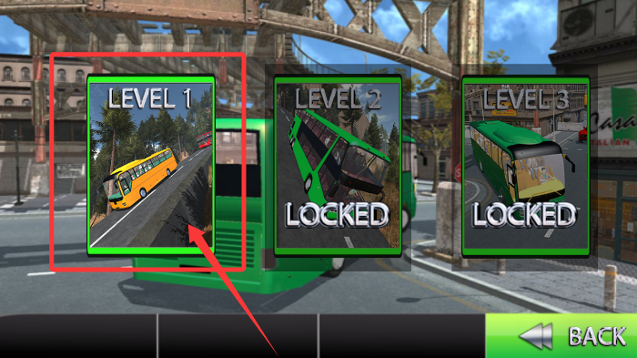 3、从车库中挑选心仪的汽车准备启程,操控巴士沿着规划路线平稳行驶。