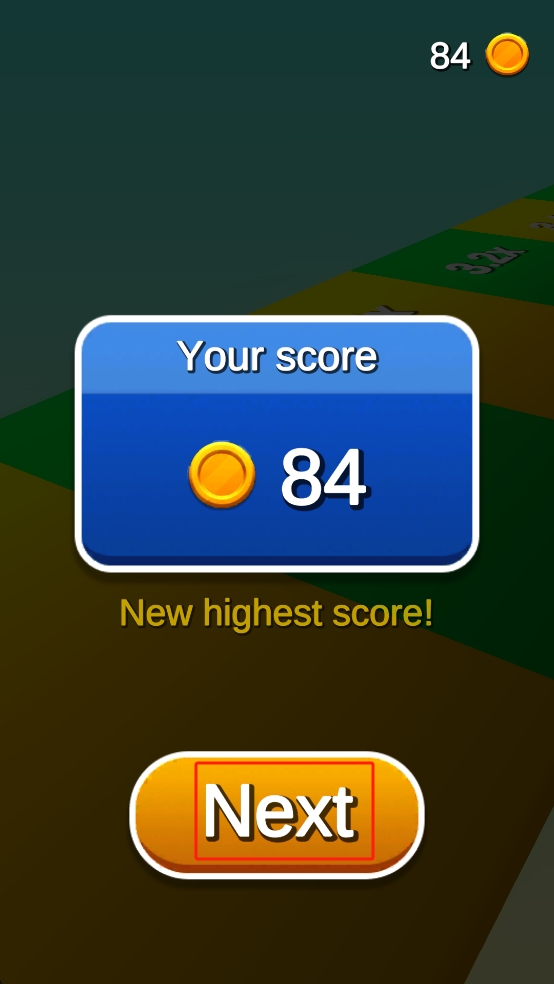 3、一局结束后,界面会显示本次切割收货的金币,点击橙色按钮,进入下一关,接着挑战拿更高分。
