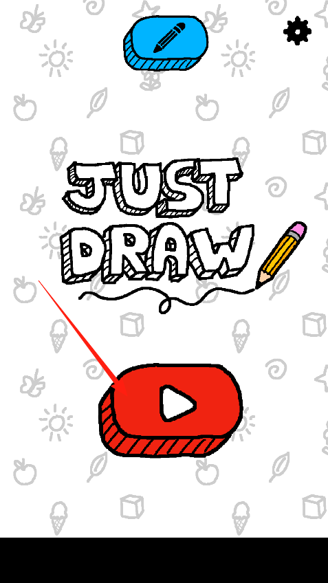 1、打开画就完了游戏,点红色播放按钮进入绘画关卡,在关卡里要根据提示画画,用画笔工具发挥创意,完成每一关的绘画挑战。