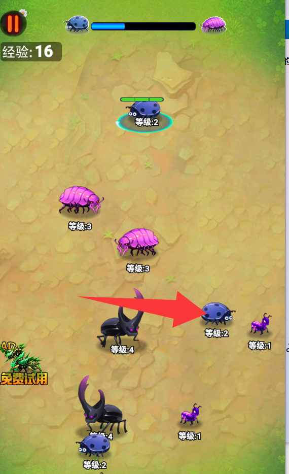 昆虫大冒险最新版开启一场微观世界的饕餮盛宴,在这个放大100倍的草丛王国,你扮演的瓢虫宝宝正开启逆天改命之旅,吞下露珠能短暂滑翔,而抢到蚂蚁的糖粒会触发狂暴模式连续吃掉同色昆虫会觉醒特殊技能,比如萤火虫的致盲闪光或是毛毛虫的伪装术,当你在蒲公英战场上,用进化出的螳螂刀臂完成1v3反杀时,全场蟋蟀观众会为你奏响胜利进行曲。