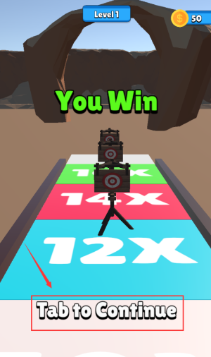 4、点击红框Tab to Continue,领取50金币通关奖励。