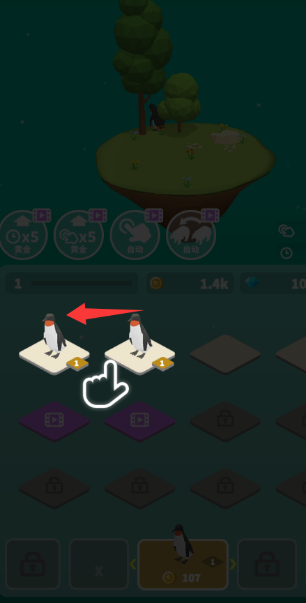 3、点击红色箭头里的企鹅会消耗100金币。