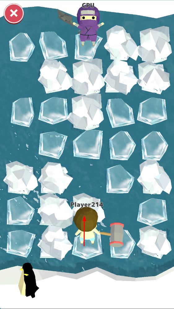 3、持续破坏关键冰块,引导对手踩上已碎或即将破碎的地板,使其踩空或被击沉,赢得对战胜利,体验策略得逞的快感。