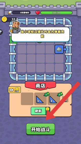 2、根据文字提示:当小球经过拨片时会为弹壳补充能量,了解后点击开始战斗的按钮进行操作。