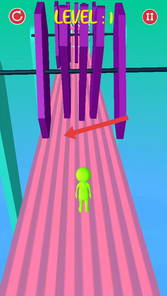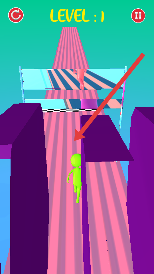 1、操控绿色小人左右移动,躲紫色旋转障碍,别被砸中;遇镜面关卡,按折射路径来调整方向。
