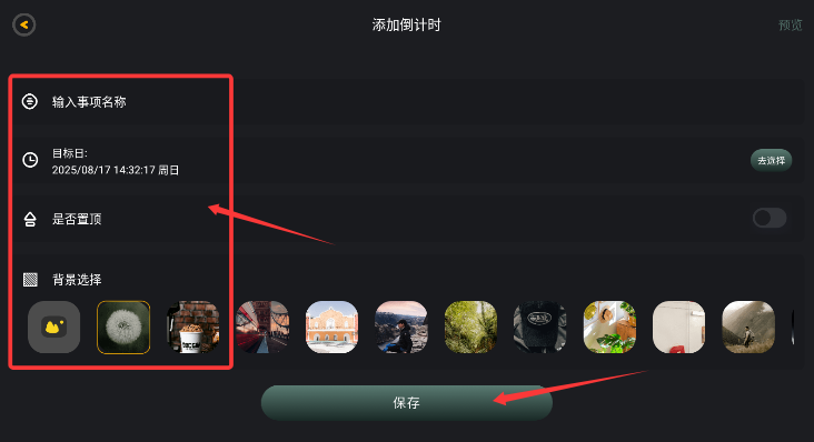 2、填写事项信息时,可自定义日期、背景样式及置顶显示选项。