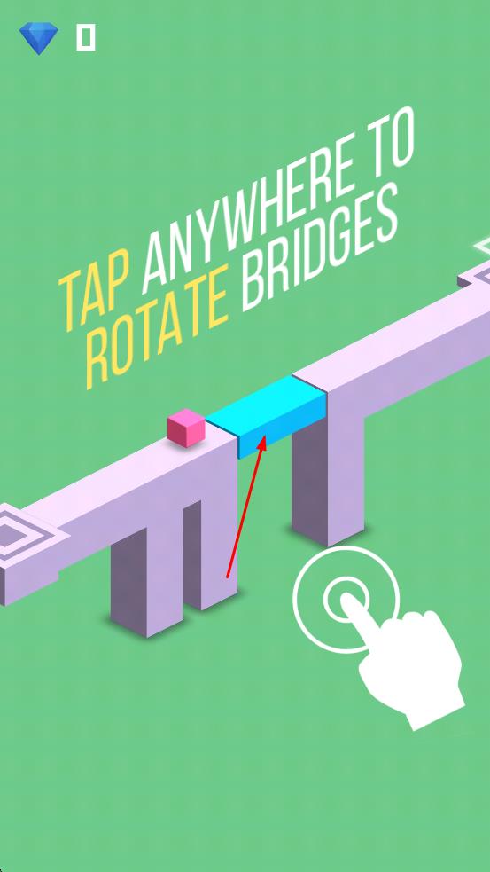 1、点击屏幕旋转桥梁,搭建粉色方块移动的通路,开启闯关进程。