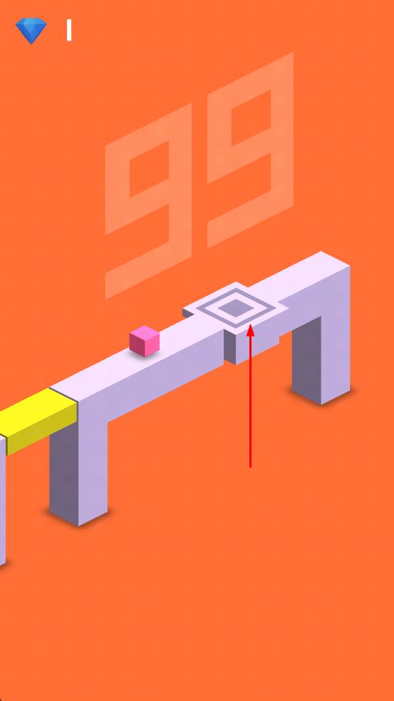 2、操控方块沿搭建好的桥梁移动,收集钻石,推进关卡进度。