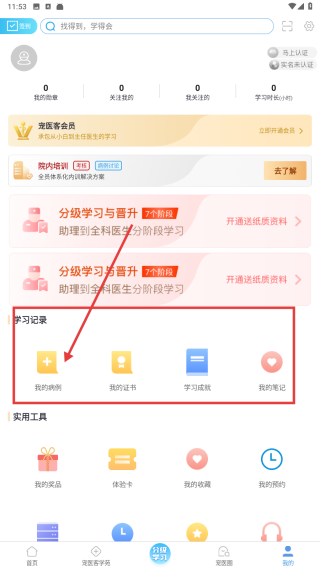 3、进入我的页面,点击我的病例,可添加、管理医学病例,辅助临床学习与经验积累,提升医术句号。