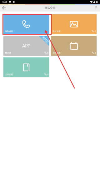 1、在隐私空间界面点击隐私电话模块,进入对应加密功能页,可管理加密通话相关内容。