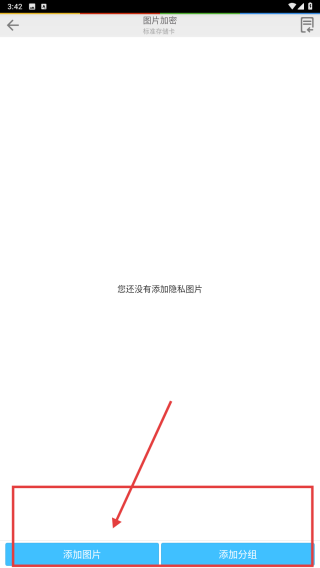 2、进入图片加密页面,点击添加图片按钮,可从本地选择图片进行加密存储,保护隐私。
