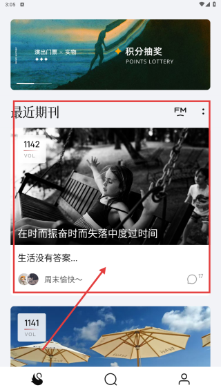1、在页面中点击近期刊内容,进入对应期刊详情页,浏览在时而振奋时而失落中度过时间”等主题内容与互动信息。