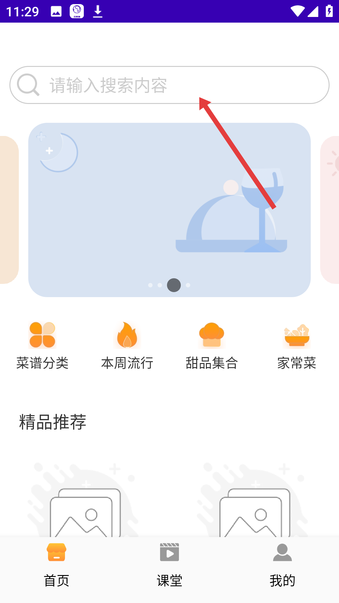 1、顶部有搜索栏,你可以输入想吃的美食或者菜谱名称来查找,下面还有菜谱分类,本周流行等功能入口,能帮你快速找到不同类型的美食内容,比如想找甜品,就点甜品集合。