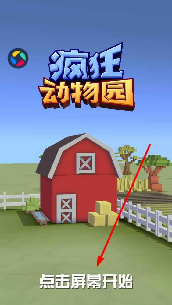 1、进入疯狂动物园游戏初始界面,点击屏幕下方点击屏幕开始文字区域,正式启动游戏。
