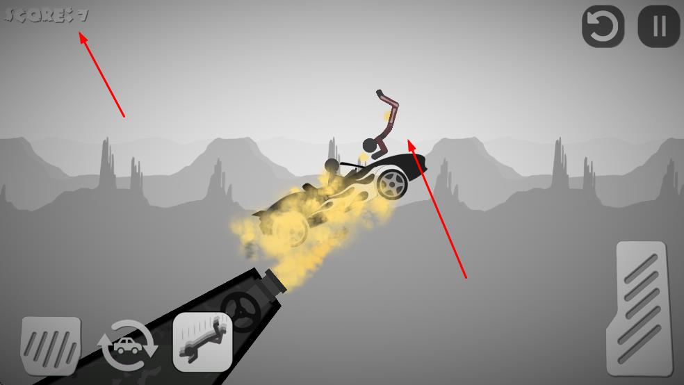 3、持续撞击火柴人并完成特技,提升分数,推进游戏进程。