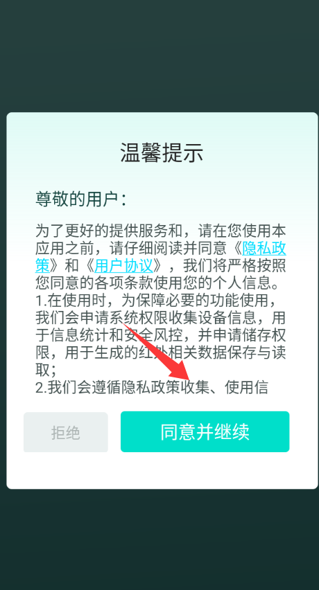 1、点击温馨提示里的同意并继续。