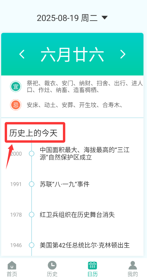 4、这里有日历看,还可以看历史上的今天。