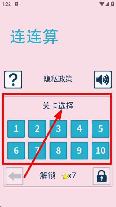 1、进入连连算在【关卡选择】界面,点击数字按钮,进入解密。