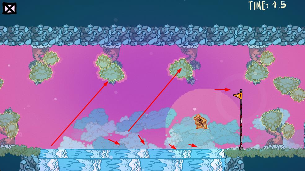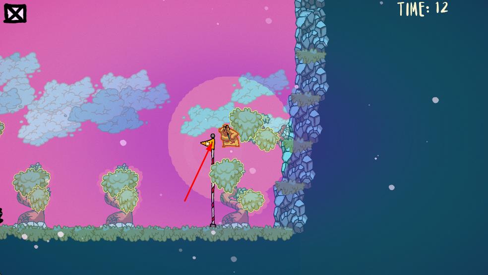2、跨越地形障碍,限时TIME计数内抵达旗帜,完成关卡。