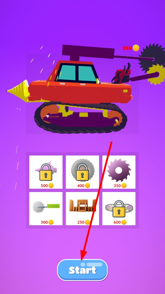 1、进入改装界面,消耗金币解锁锯片、尖锥等多样武器,自由装配战车前后左右,让武器覆盖更广碰撞角度,提升攻击范围。