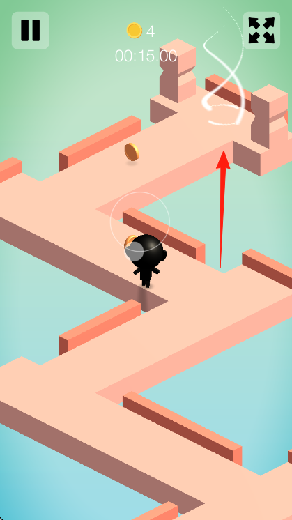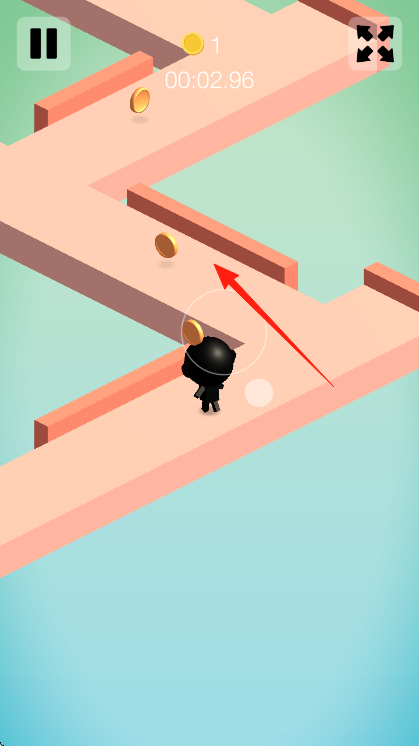1、操控火柴人按照红箭头方向前进,收集沿途的金币,这不仅能增加分数,还可能用于后续解锁道具或角色。