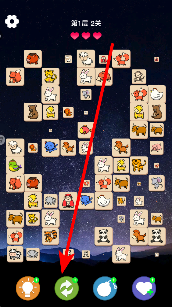 2、巧用道具,当遇到棘手消除难题时,快速点击下方的道具按钮,像刷新道具能直接重置图案布局,巧妙借助道具打破当前僵局,有效提升通关效率进度。
