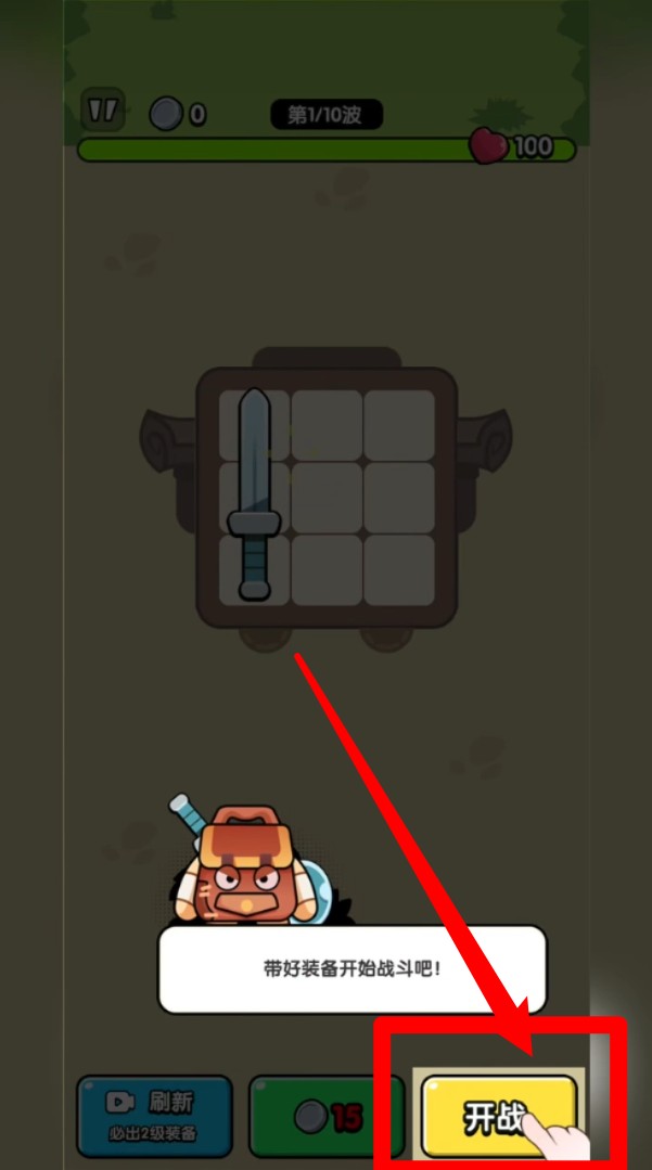 1.点击开始战斗:玩家需要将武器装备好后点击开始战斗按钮,进入激烈的挑战模式,与小怪展开一场正面交锋。