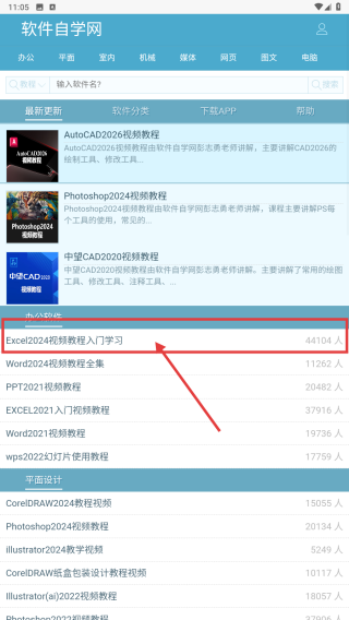 1、进入软件自学网,找到Excel2024视频教程入门学习课程,点击进入课程详情页。