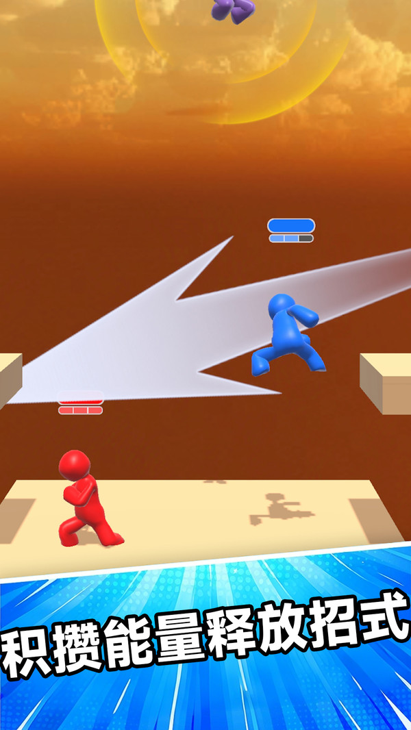 4.升级成长:每场战斗积累经验,逐步提升角色能力并解锁更多动作技能,让玩家在不断成长中增强竞技场的优势。