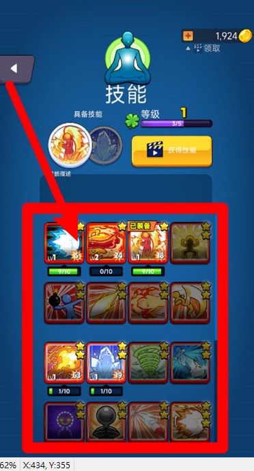 2.技能选择:技能界面展示多种技能卡片,玩家可自由点击选择并升级,形成不同组合,打造个性化的专属格斗方式。