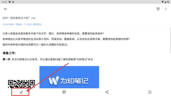 1、打开为知笔记应用,点击目标笔记如如何一键收藏微信文章,进入笔记详情页。