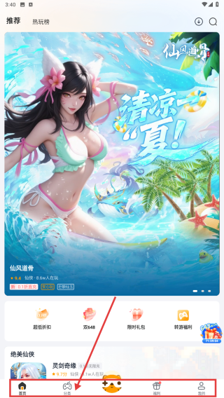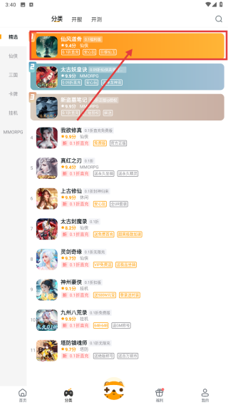 2、在分类界面找到仙风道骨游戏条目,点击进入该游戏的详情页面。