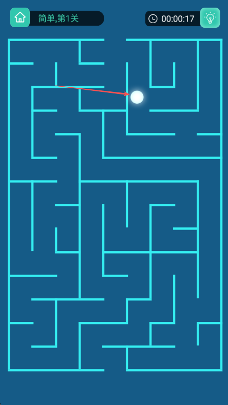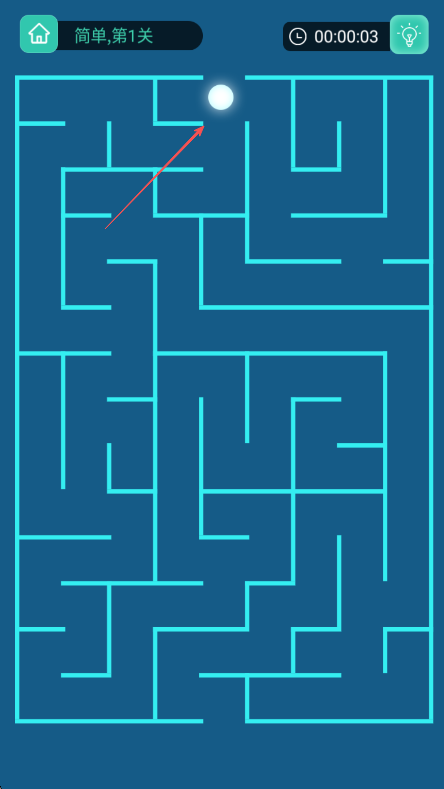 1、进入简单,第1关,查看右上角计时器00:00:03,操控白色小球开始探索迷宫。