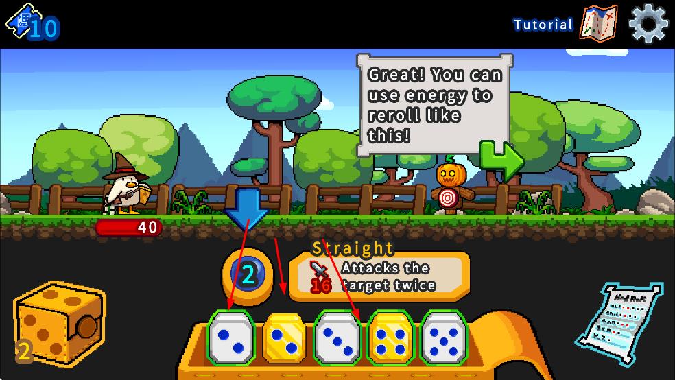 1、学习使用能量重掷骰子,了解Straight等技能如攻击目标两次,为战斗做准备。