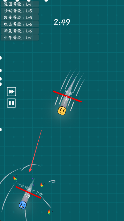 1、极简操作设计:核心操作仅需拖动屏幕即可控制成群飞剑移动、攻击与躲避,无需额外按键组合,无论是儿童还是新手玩家,都能在1分钟内快速上手。