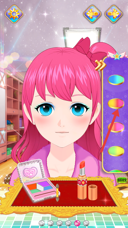 3、妆容与服装适配:化妆界面会根据当前公主穿戴的服装风格,推荐适配的妆容单品,比如穿礼服时推荐精致唇妆与闪片眼影,穿日常裙装时推荐清新裸妆,建立审美认知。