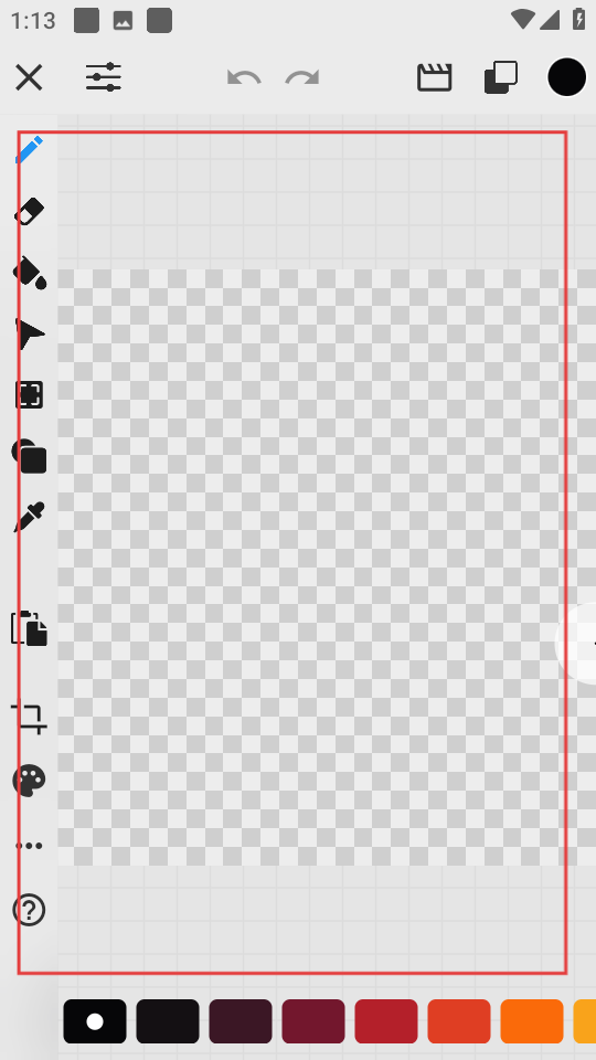 3、进入编辑画布页面,可使用左侧工具和下方颜色进行创作。