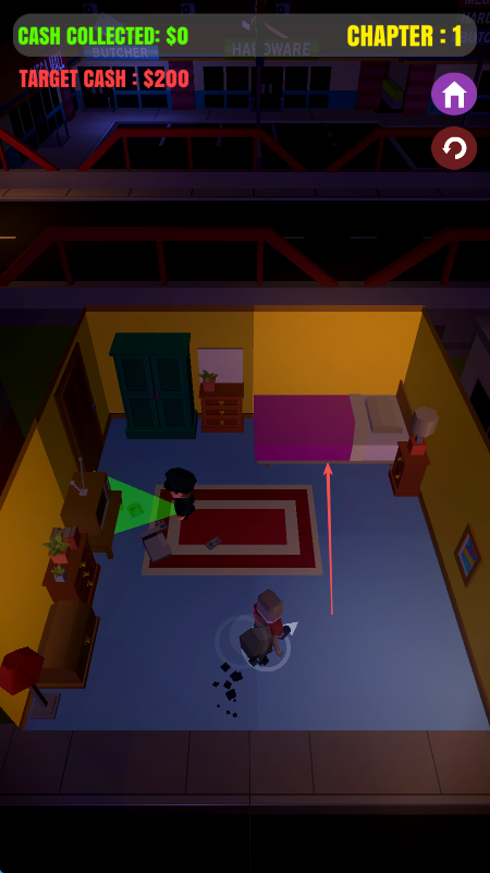 3、当现金达到TARGET CASH目标数额后,寻找安全路线,按Escape!提示逃离现场,完成关卡进入如CHAPTER:1所示的下一章。