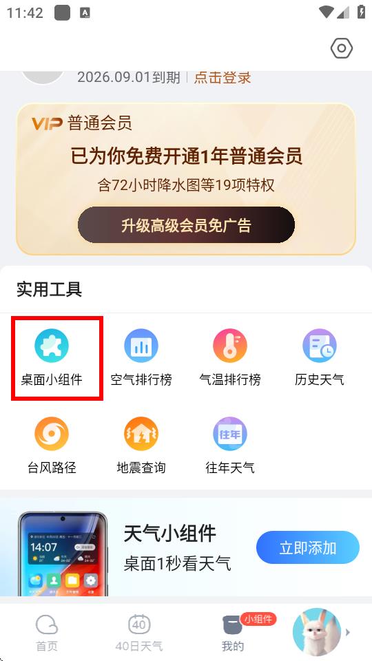 2、在个人页面中,找到桌面小组件选项并点击进入。