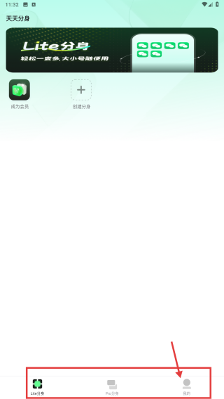 1、打开天天分身应用,点击底部我的选项,进入个人页面。