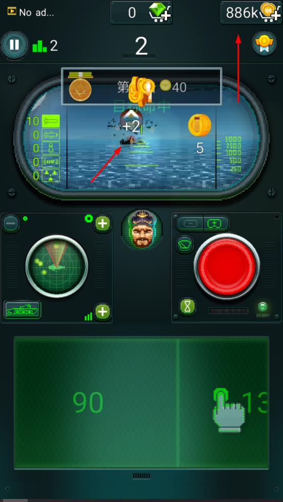 2、发射鱼雷命中战舰后,可获取金币等奖励,同时借助雷达等装置观察战场态势,掌握敌方战舰位置。