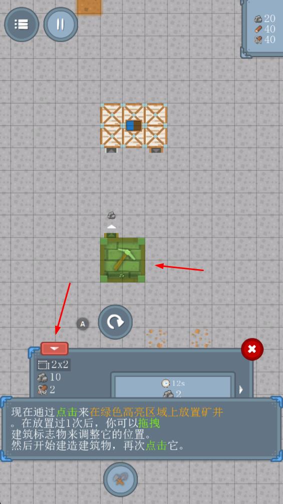 2、在绿色高亮区域点击放置矿井,放置后可拖拽建筑标志物调整位置,随后启动建筑物建造流程。
